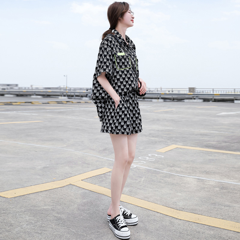 阔腿短裤套装2021年新款女夏季休闲时尚设计感衬衫雪纺两件套洋气热门设计联盟服务商